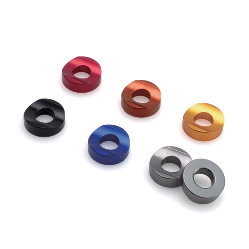 Fornisce migliore sicurezza e aderenza al cerchio. Realizzato in alluminio, disponibile in 6 colori anodizzati argento, blu, oro, nero, titanio, rosso. Venduti in coppia.