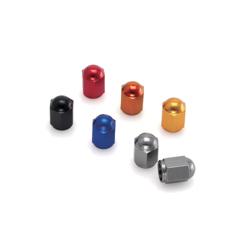 Tappi valvola in alluminio. Dona un tocco di brillantezza alla tua moto. disponibile in 6 colori anodizzati argento, blu, oro, nero, titanio, rosso . Venduti in coppia.