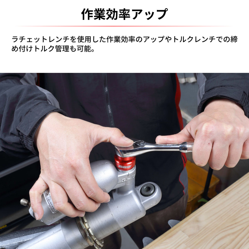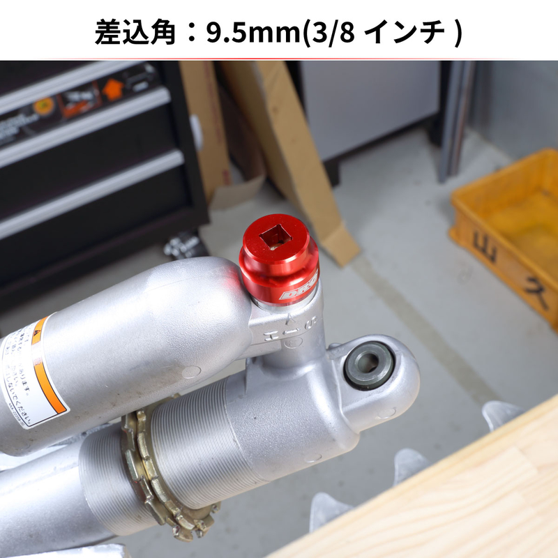 ・ A special tool to remove the compression adjuster of the rear shock. ・ It is possible to easily remove the shock body of a shape which doesn`t allow to be approached by the spanner or the monkey wrench. For 24 mm width. ・ By providing a square hole of 3/8 inch socket, you can use the ratchet wrench to increase work efficiency and use torque wrench to control tightening torque.