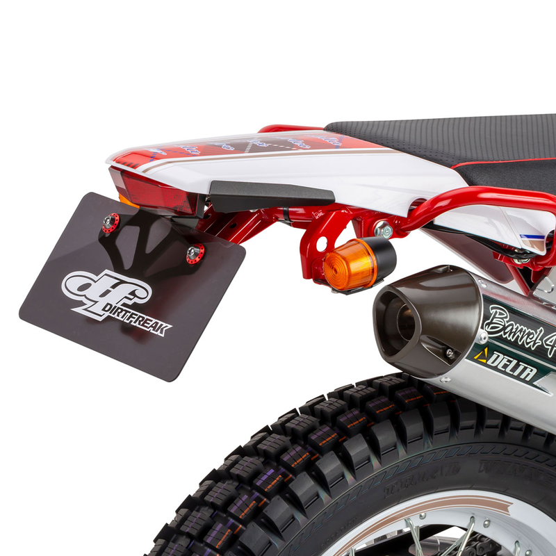 Supporto fanale posteriore specificoper CRF 250 / 300 L / RALLY DRZ400,WR250R,KLX250.Predisposizioneper porta targa e frecce. Design compatto idoneo alla guida sportiva. Realizzato in acciaio per garantire la massima durata nel tempo. Gli speciali fori ovali permettono la facile regolazione del faro posteriore. Due differenti fori permettono di installare sia le frecce OEM che quelle da 8 mm.