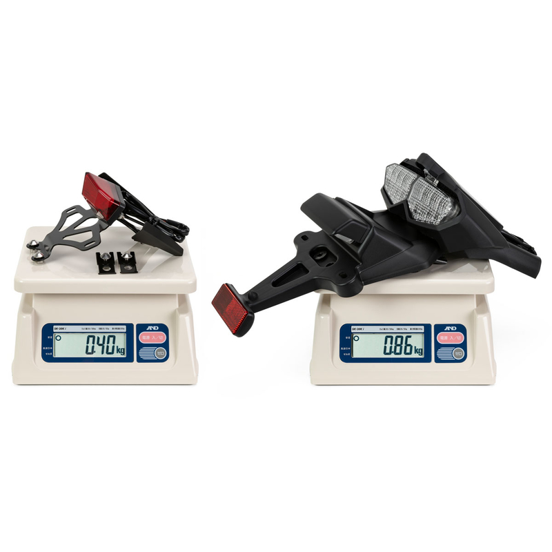Set of 'Edge Tail Light', tail light stay and fender side cover exclusively designed for SEROW250 '18-. Slim design fits inside the rear fender for a sleek tail light. No wiring modification is required for installation.