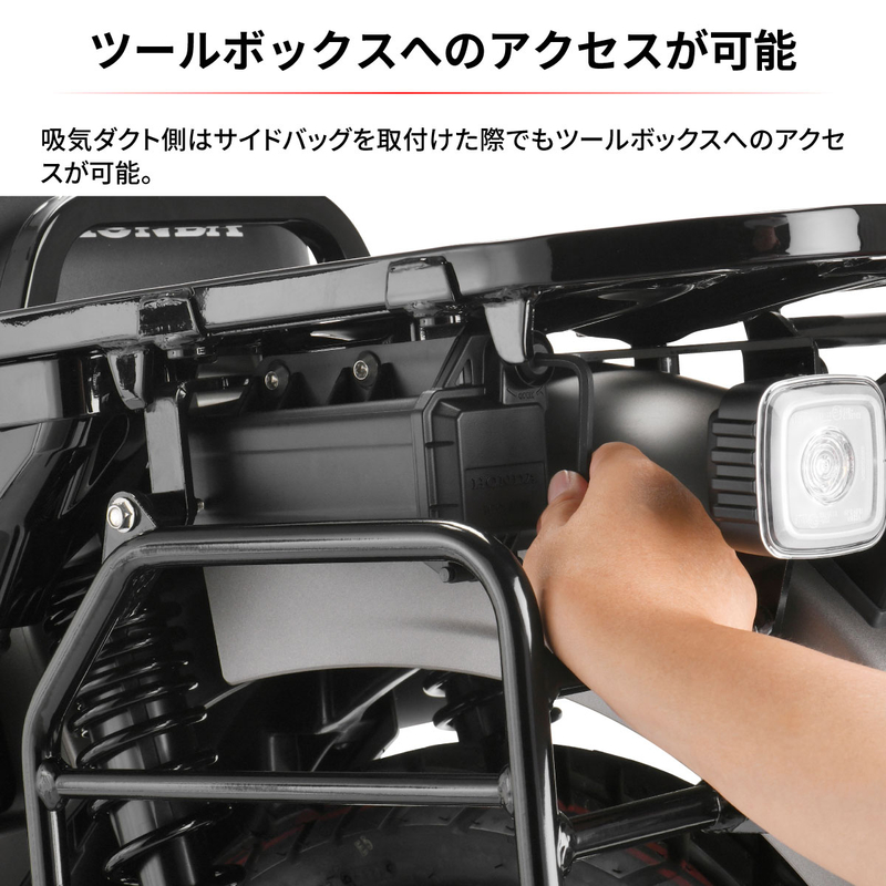 • The intake duct side allows access to the tool box even when the side bags are installed.