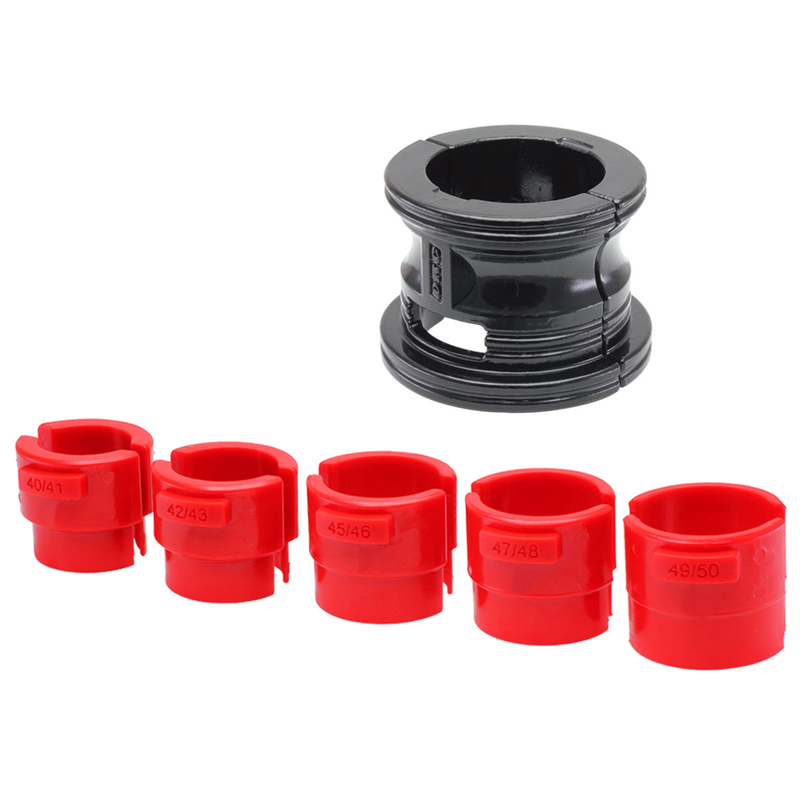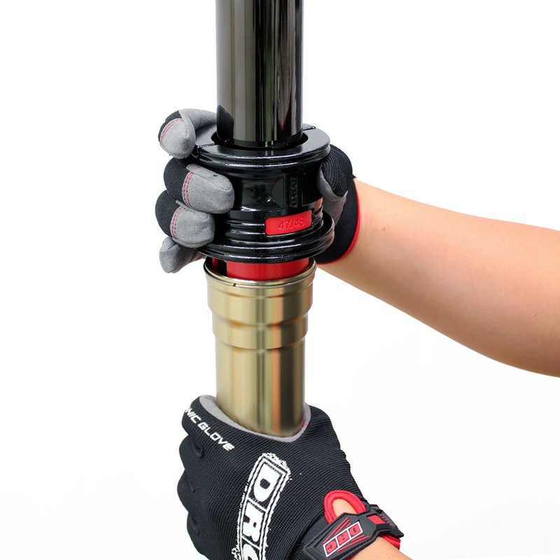 Monta paraoli per forcelle. Venduto con 5 adattatori in plastica. Puo' essere utilizzato con la maggior parte delle forcelle convenzionali e a stelo rovesciato. La forma a flangia e il corpo in metallo dell'attrezzo permettono il massimo della precisione con il minimo sforzo. Dimensione degli adattatori (mm) 40/41, 42/43, 45/46, 47/48, 49/50. Kit riduzione venduto come ricambio cod.D49-26-908/909