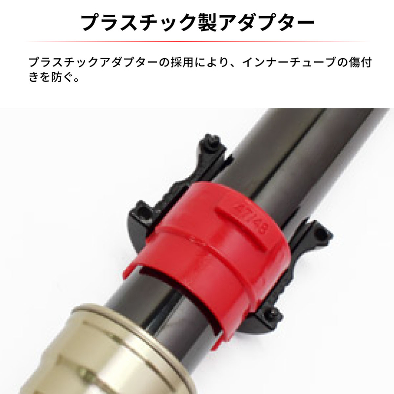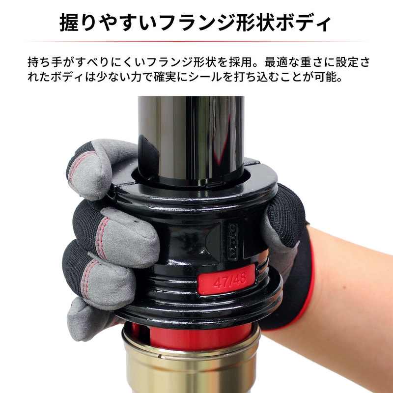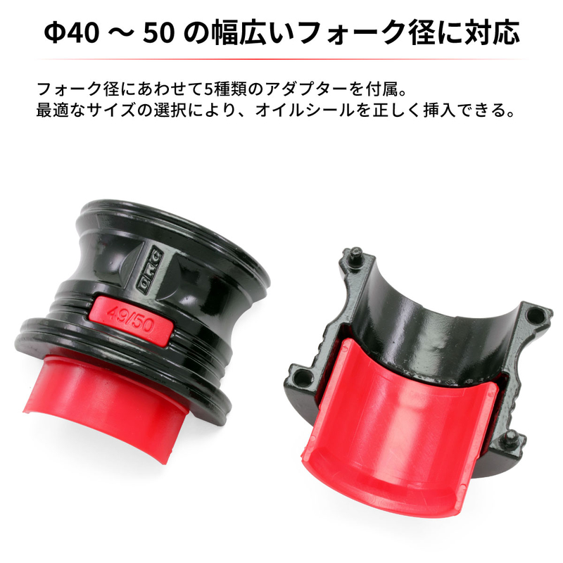 Special tool for hammering in fork oil seals on motocrossers and trail cars. The plastic adapter is attached to the body for use. The flange type is easy to hold and the 40 mm diameter, 780 g body weight makes it possible to drive in the seal more securely.
