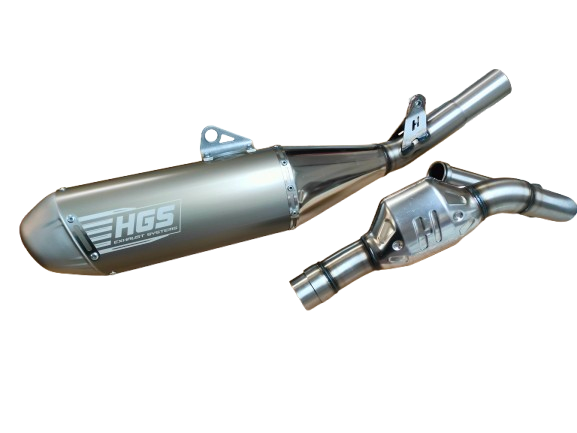 I migliori piloti scelgono HGS Exhaust System per migliorare le prestazioni della loro moto su tutti i tipi di piste. Realizzati in alluminio con lavorazione artigianale / handmade i prodotti HGS Exhaust System sono utilizzati dai migliori piloti perche permettono di ottenere maggiore potenza su qualsiasi pista. Il silenziatore e' di altissima qualita' e fornisce un incremento della potenza a medi regimi. Questo impianto di scarico e' utilizzato dal team ufficiale Kawasaki in MXGP e da tanti altri piloti orgogliosi di montare un sistema di scarico HGS. Per ottenere il massimo incremento di potenza e' necessario sostituire anche il tubo di scarico originale con uno HGS Exhaust System. Raggiunge una soglia acustica di 94db.