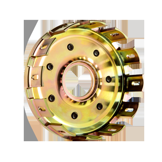 Il cestello frizione Hinson e' conosciuto per essere uno dei migliori al mondo. Utilizzato dai migliori team e piloti tra cui Team Honda, Team Kawasaki, Team Suzuki e team KTM. Il cestello Hinson migliora la prestazione e la durata della frizione, tramite una miglior conduzione del calore e un lavoro di precisione con tolleranza stretta da un pezzo in alluminio T-6. Dopo esser stato tornito a CNC, la superficie viene rivestita con un metodo di lavorazione speciale chiamato Akadize, fornisce fino a cinque volte piu' durabilita' rispetto al cestello originale. Il cestello Hinson gira in modo piu' accurato, creando meno calore quando la frizione e' disinserita. Se utilizzato con altri componenti della frizione Hinson, piastra di pressione e mozzetto, aiuta a eliminare le vibrazioni della frizione.