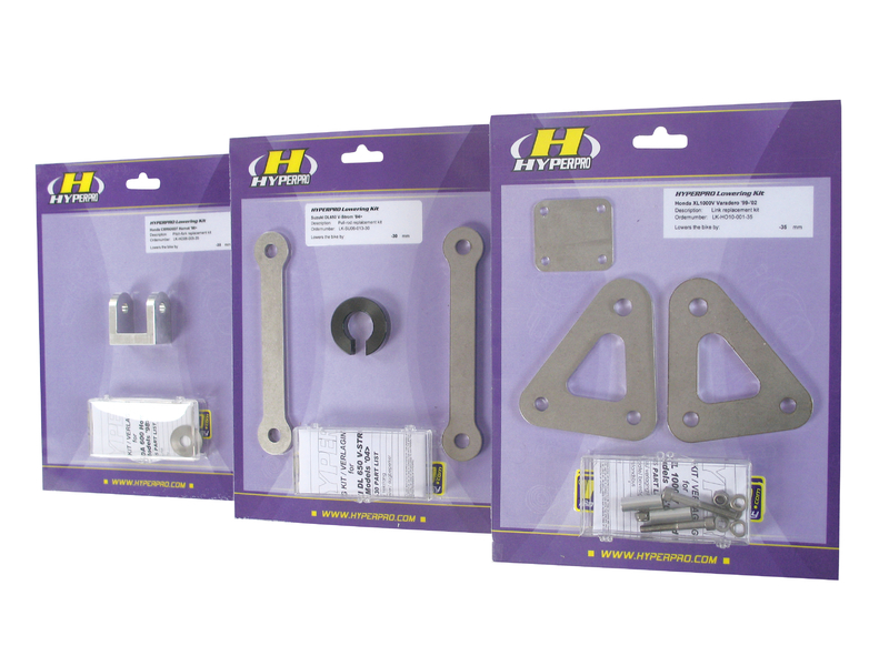 L'Hyperpro sviluppa costantemente moto per moto dei kit abbassamento per migliorare la sicurezza, il confort e l'assetto di guida in maniera bilanciata, per fornire a tutti il gusto di andare in moto in sicurezza. Disponibili con la comodissima molla progressiva ribassata, che consentedi abbassare la moto appena il pilota si siede, per poi lavorare con la giusta progressione. Dove non possibile montare la molla mono ribassata viene fornito il KIT leveraggi ribassati. E' consigliabile montare sempre il KIT ribassato sia anteriore che posteriore, per avere cos un assetto bilanciato