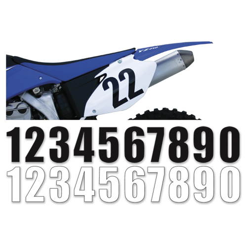 Numeri standard per tabella porta numero. Dimensioni ridotte per i modelli di moto piu' recenti. Disponibile in 3 misure. Materiale vinilico, adesivo con 0.1 mm di spessore. La confezione contiene 3 numeri.