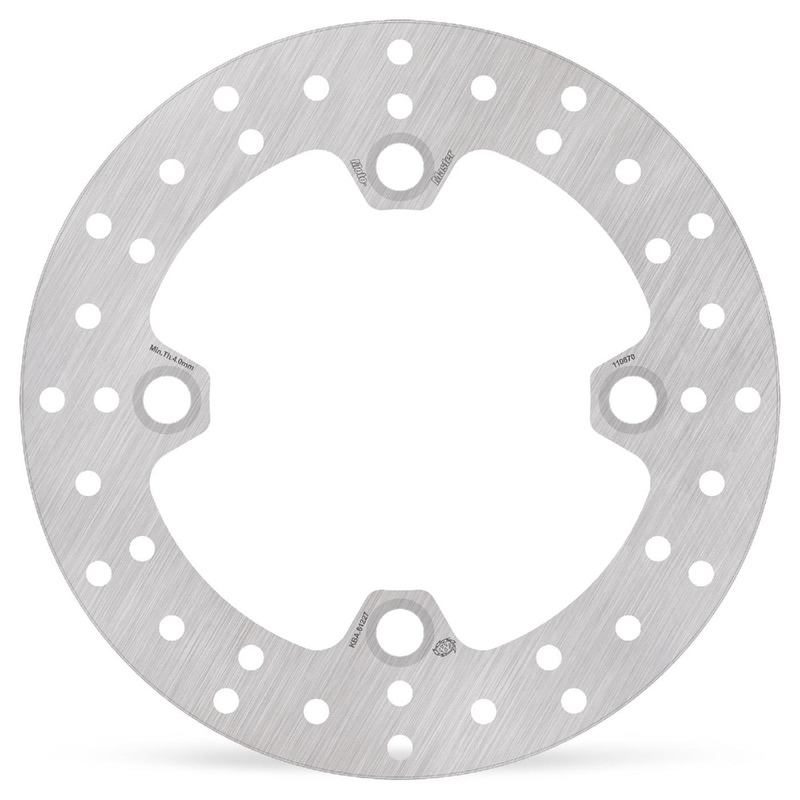 Costruiti con acciaio di derivazioneaereonautica, disponibili sia per ilposteriore che per l'anteriore, tagliati al laser e lavorati con macchine ad alta precisione CNC, vengono rettificati e trattati termicamente per resistere al calore, alla deformazione e alla corrosione. Il particolare disegno delle zone di alleggerimento consente un apprezzabile riduzione di peso el'annullamento dell'effetto giroscopico dovuto alla maggiorazione del diametro esterno. I nottolini di collegamento (costruiti in ergal con ossidazione dura) di ultima generazione consentono il reale adattamento della pista frenante per permettere la completa efficienza del sistema, garantendo prestazioni costanti anche in condizioni di utilizzo severe. Per l'utilizzo di alcuni necessario rip osizionare la pinza freno tramite lo specifico supporto pinza MOTOMASTER.
