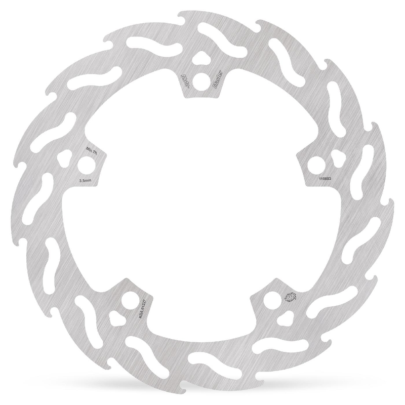 Costruiti con acciaio di derivazioneaereonautica, disponibili sia per ilposteriore che per l'anteriore, tagliati al laser e lavorati con macchine ad alta precisione CNC, vengono rettificati e trattati termicamente per resistere al calore, alla deformazione e alla corrosione. Il particolare disegno delle zone di alleggerimento consente un apprezzabile riduzione di peso el'annullamento dell'effetto giroscopico dovuto alla maggiorazione del diametro esterno. I nottolini di collegamento (costruiti in ergal con ossidazione dura) di ultima generazione consentono il reale adattamento della pista frenante per permettere la completa efficienza del sistema, garantendo prestazioni costanti anche in condizioni di utilizzo severe. Per l'utilizzo di alcuni necessario rip osizionare la pinza freno tramite lo specifico supporto pinza MOTOMASTER.