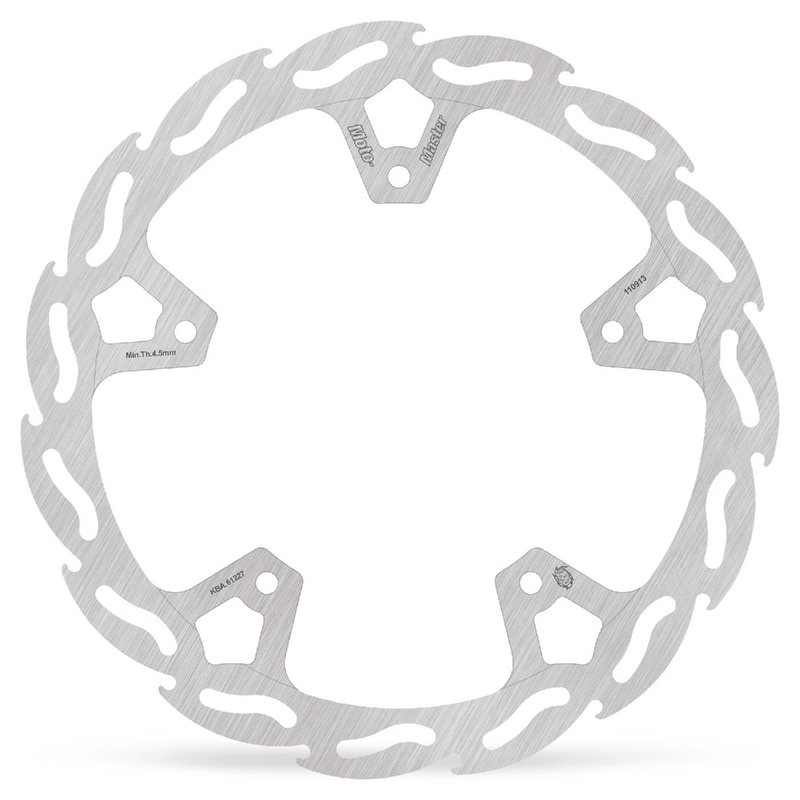 Costruiti con acciaio di derivazioneaereonautica, disponibili sia per ilposteriore che per l'anteriore, tagliati al laser e lavorati con macchine ad alta precisione CNC, vengono rettificati e trattati termicamente per resistere al calore, alla deformazione e alla corrosione. Il particolare disegno delle zone di alleggerimento consente un apprezzabile riduzione di peso el'annullamento dell'effetto giroscopico dovuto alla maggiorazione del diametro esterno. I nottolini di collegamento (costruiti in ergal con ossidazione dura) di ultima generazione consentono il reale adattamento della pista frenante per permettere la completa efficienza del sistema, garantendo prestazioni costanti anche in condizioni di utilizzo severe. Per l'utilizzo di alcuni necessario rip osizionare la pinza freno tramite lo specifico supporto pinza MOTOMASTER.