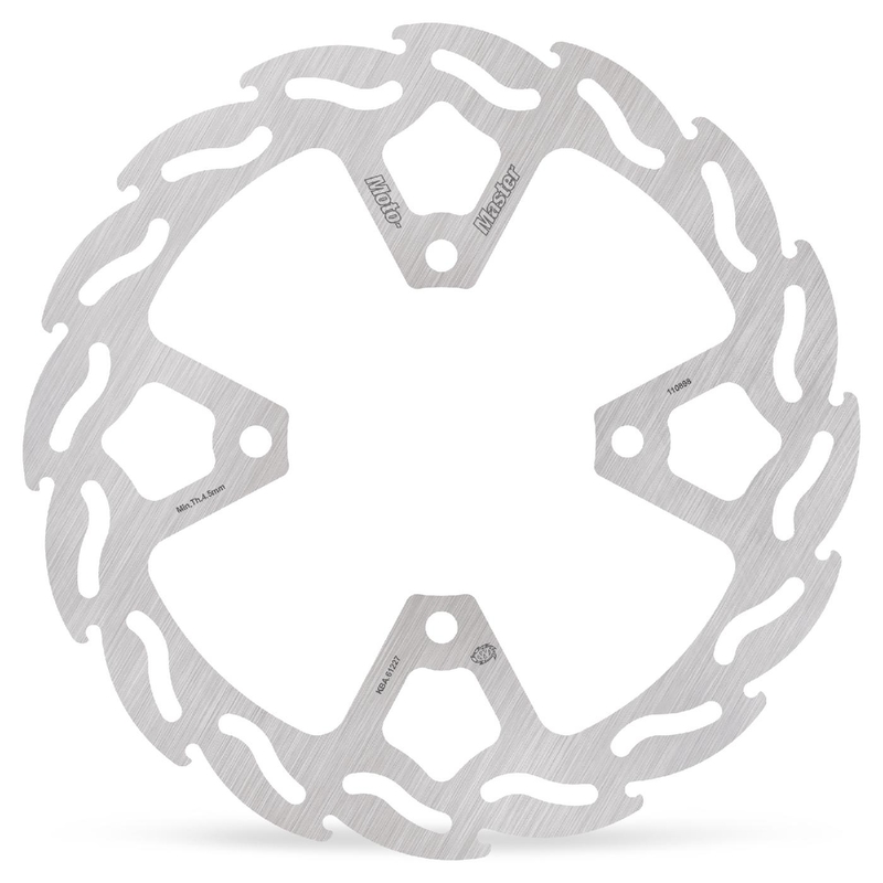 Costruiti con acciaio di derivazioneaereonautica, disponibili sia per ilposteriore che per l'anteriore, tagliati al laser e lavorati con macchine ad alta precisione CNC, vengono rettificati e trattati termicamente per resistere al calore, alla deformazione e alla corrosione. Il particolare disegno delle zone di alleggerimento consente un apprezzabile riduzione di peso el'annullamento dell'effetto giroscopico dovuto alla maggiorazione del diametro esterno. I nottolini di collegamento (costruiti in ergal con ossidazione dura) di ultima generazione consentono il reale adattamento della pista frenante per permettere la completa efficienza del sistema, garantendo prestazioni costanti anche in condizioni di utilizzo severe. Per l'utilizzo di alcuni necessario rip osizionare la pinza freno tramite lo specifico supporto pinza MOTOMASTER.