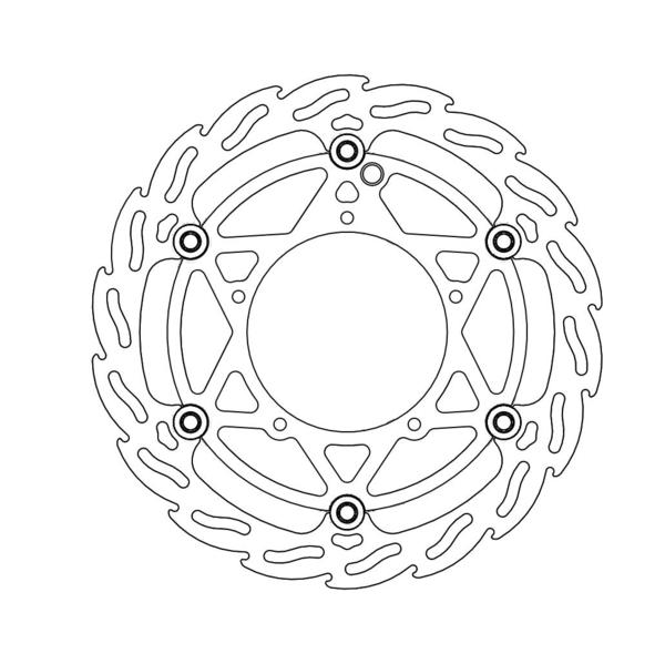 Questo disco flottante con rotore inacciaio anodizzato di colore nero o o argento. Con il famoso disegno a fiamma che ne aumenta il raffreddamento. Compatibile con la pinza freno originale