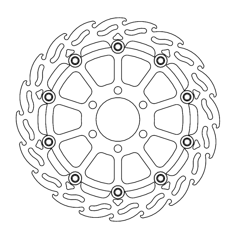 Questo disco flottante con rotore inacciaio anodizzato di colore nero o o argento. Con il famoso disegno a fiamma che ne aumenta il raffreddamento. Compatibile con la pinza freno originale