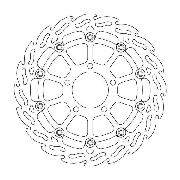 Questo disco flottante con rotore inacciaio anodizzato di colore nero o o argento. Con il famoso disegno a fiamma che ne aumenta il raffreddamento. Compatibile con la pinza freno originale