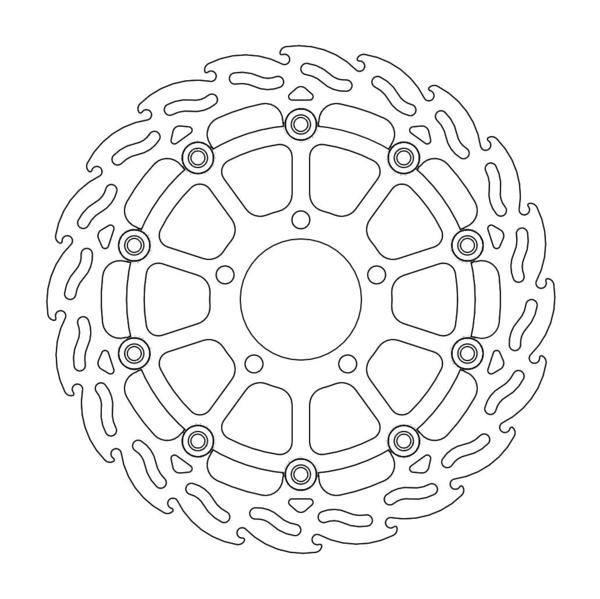 Questo disco flottante con rotore inacciaio anodizzato di colore nero o o argento. Con il famoso disegno a fiamma che ne aumenta il raffreddamento. Compatibile con la pinza freno originale