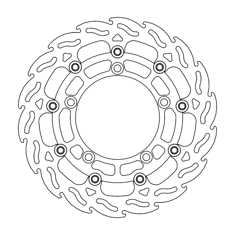 Questo disco flottante con rotore inacciaio anodizzato di colore nero o o argento. Con il famoso disegno a fiamma che ne aumenta il raffreddamento. Compatibile con la pinza freno originale