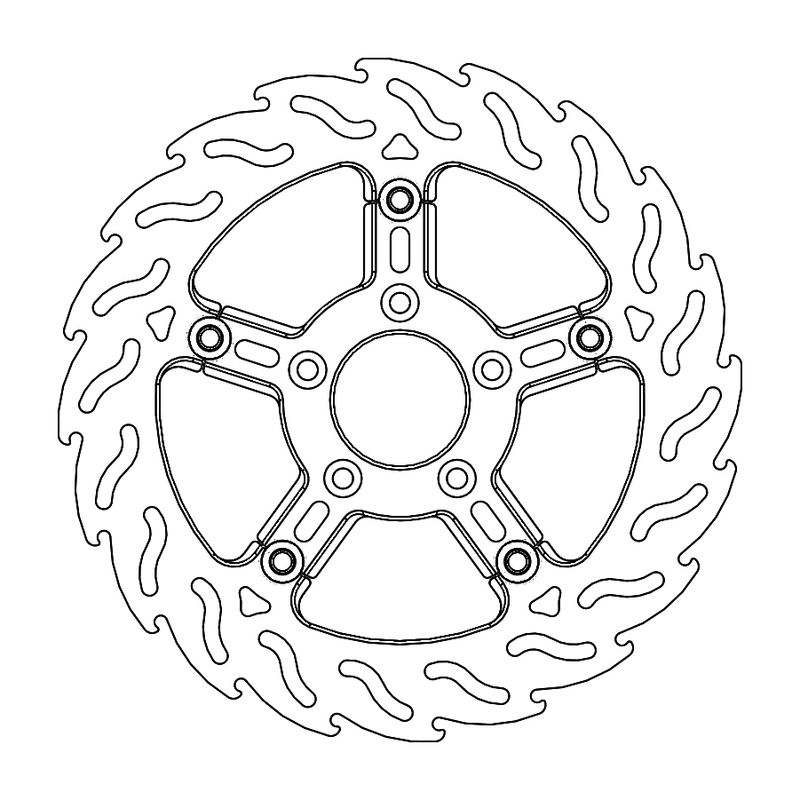 Questo disco flottante con rotore inacciaio anodizzato di colore nero o o argento. Con il famoso disegno a fiamma che ne aumenta il raffreddamento. Compatibile con la pinza freno originale
