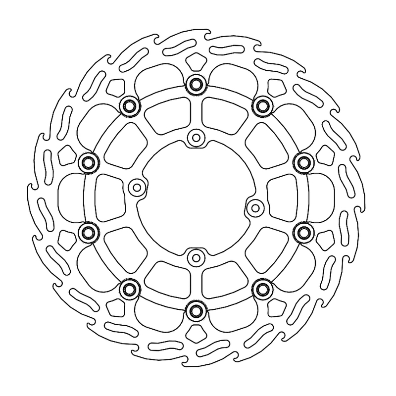 Questo disco flottante con rotore inacciaio anodizzato di colore nero o o argento. Con il famoso disegno a fiamma che ne aumenta il raffreddamento. Compatibile con la pinza freno originale