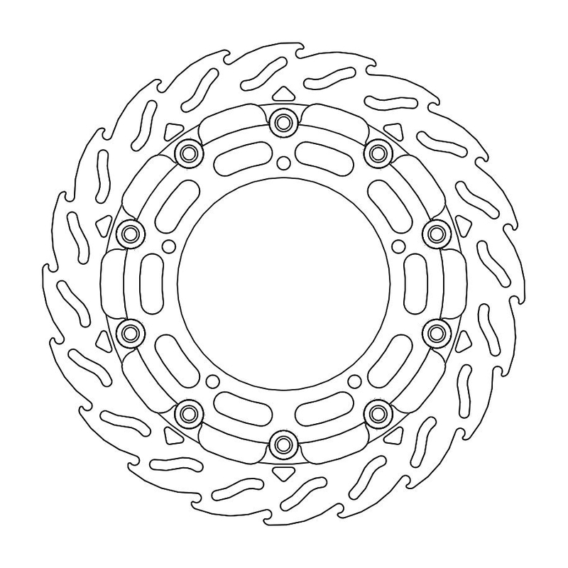 Questo disco flottante con rotore inacciaio anodizzato di colore nero o o argento. Con il famoso disegno a fiamma che ne aumenta il raffreddamento. Compatibile con la pinza freno originale