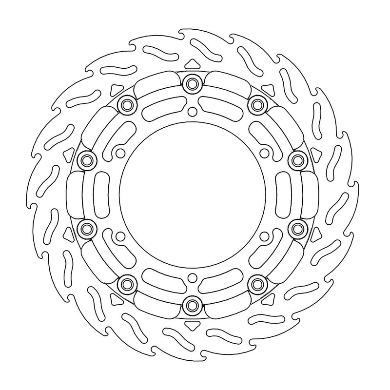 Questo disco flottante con rotore inacciaio anodizzato di colore nero o o argento. Con il famoso disegno a fiamma che ne aumenta il raffreddamento. Compatibile con la pinza freno originale