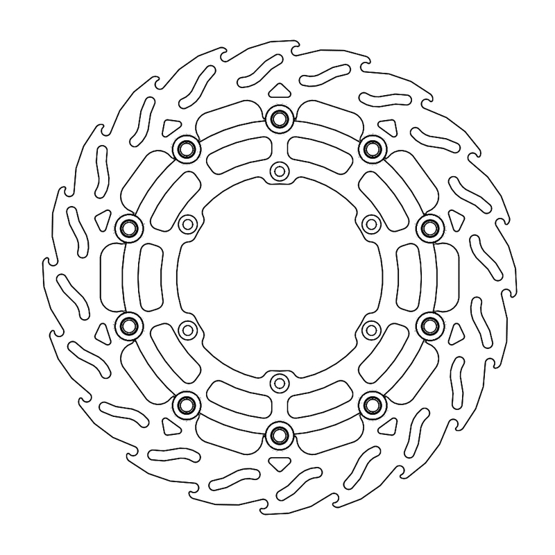 Questo disco flottante con rotore inacciaio anodizzato di colore nero o o argento. Con il famoso disegno a fiamma che ne aumenta il raffreddamento. Compatibile con la pinza freno originale
