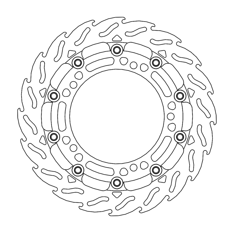Questo disco flottante con rotore inacciaio anodizzato di colore nero o o argento. Con il famoso disegno a fiamma che ne aumenta il raffreddamento. Compatibile con la pinza freno originale