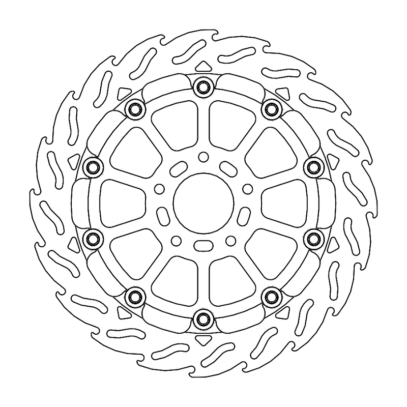 Questo disco flottante con rotore inacciaio anodizzato di colore nero o o argento. Con il famoso disegno a fiamma che ne aumenta il raffreddamento. Compatibile con la pinza freno originale