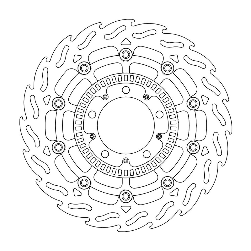 Questo disco flottante con rotore inacciaio anodizzato di colore nero o o argento. Con il famoso disegno a fiamma che ne aumenta il raffreddamento. Compatibile con la pinza freno originale