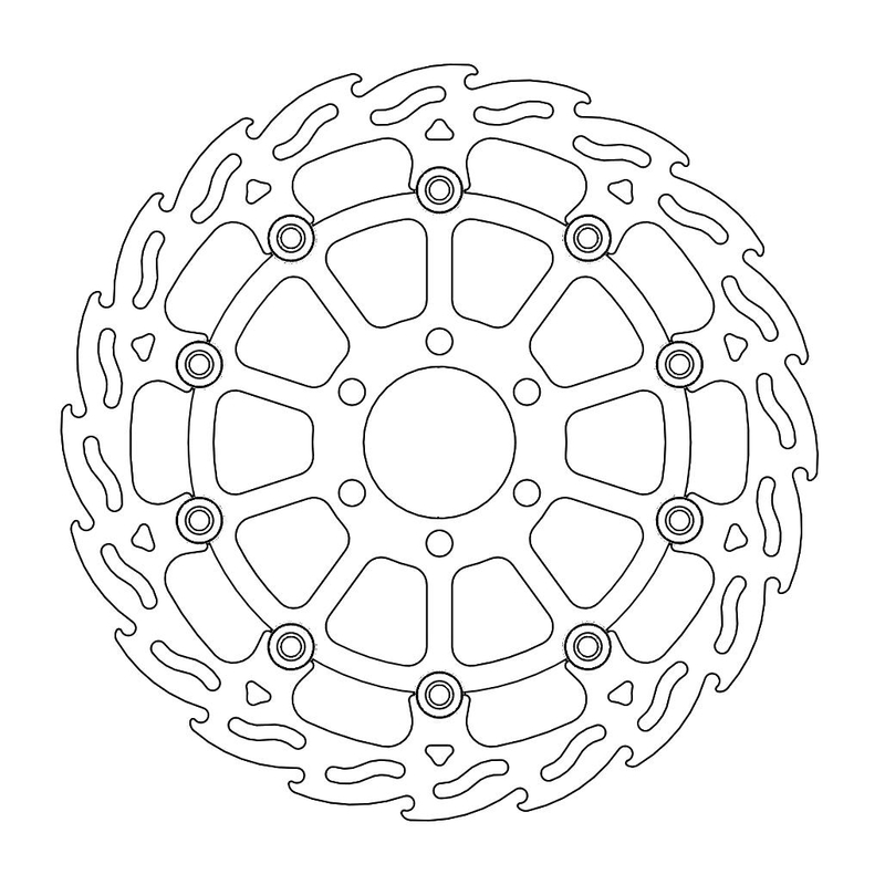 Questo disco flottante con rotore inacciaio anodizzato di colore nero o o argento. Con il famoso disegno a fiamma che ne aumenta il raffreddamento. Compatibile con la pinza freno originale