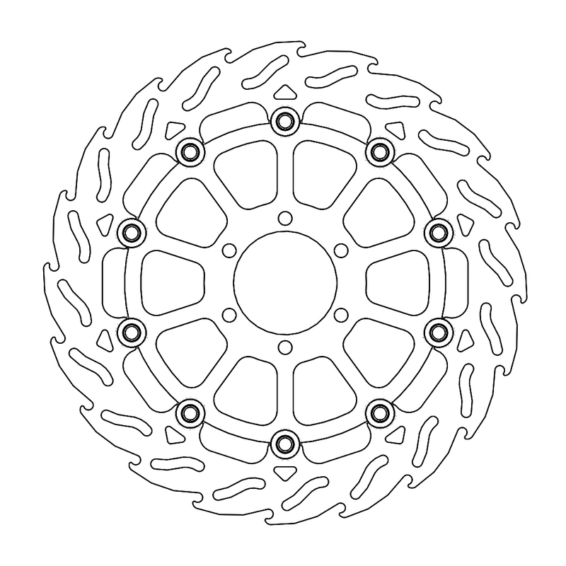 Questo disco flottante con rotore inacciaio anodizzato di colore nero o o argento. Con il famoso disegno a fiamma che ne aumenta il raffreddamento. Compatibile con la pinza freno originale