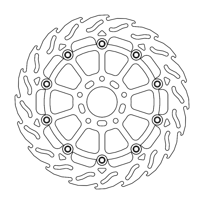Questo disco flottante con rotore inacciaio anodizzato di colore nero o o argento. Con il famoso disegno a fiamma che ne aumenta il raffreddamento. Compatibile con la pinza freno originale