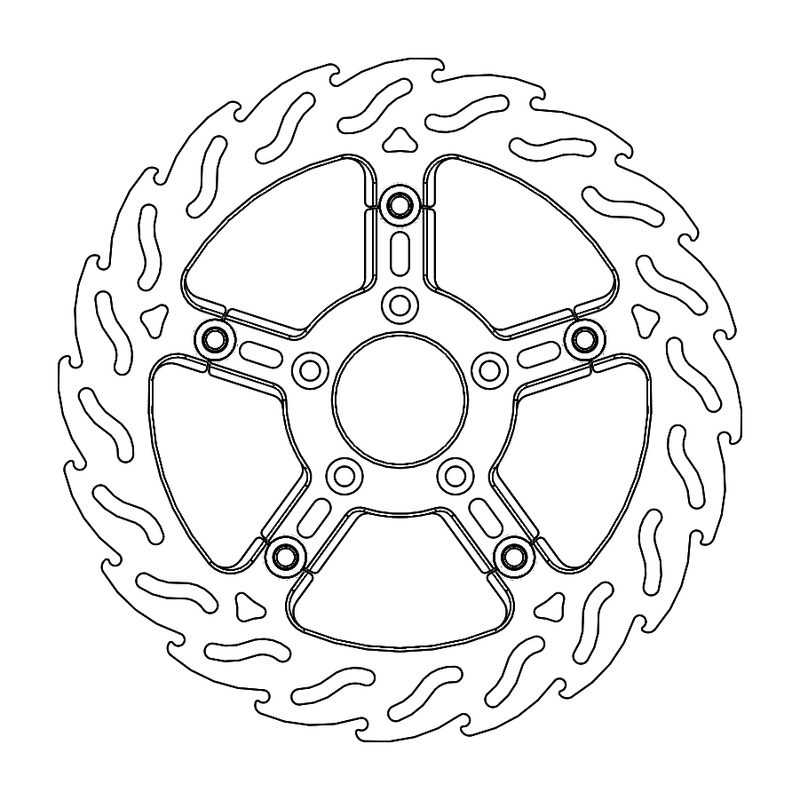 Questo disco flottante con rotore inacciaio anodizzato di colore nero o o argento. Con il famoso disegno a fiamma che ne aumenta il raffreddamento. Compatibile con la pinza freno originale