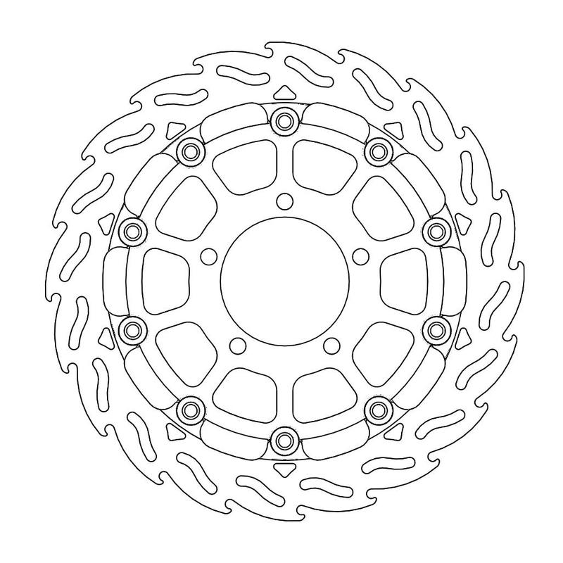 Questo disco flottante con rotore inacciaio anodizzato di colore nero o o argento. Con il famoso disegno a fiamma che ne aumenta il raffreddamento. Compatibile con la pinza freno originale