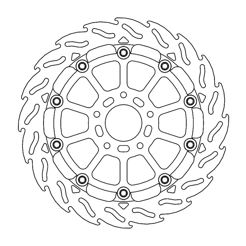 Questo disco flottante con rotore inacciaio anodizzato di colore nero o o argento. Con il famoso disegno a fiamma che ne aumenta il raffreddamento. Compatibile con la pinza freno originale
