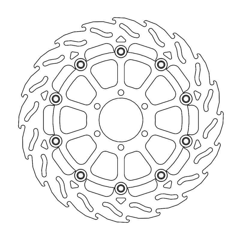 Questo disco flottante con rotore inacciaio anodizzato di colore nero o o argento. Con il famoso disegno a fiamma che ne aumenta il raffreddamento. Compatibile con la pinza freno originale