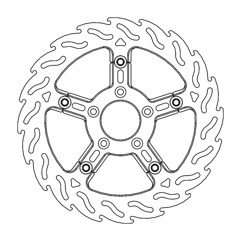 Questo disco flottante con rotore inacciaio anodizzato di colore nero o o argento. Con il famoso disegno a fiamma che ne aumenta il raffreddamento. Compatibile con la pinza freno originale