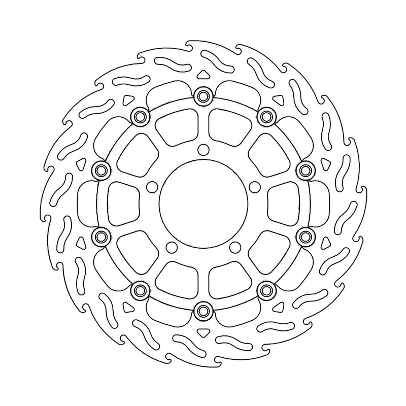 Questo disco flottante con rotore inacciaio anodizzato di colore nero o o argento. Con il famoso disegno a fiamma che ne aumenta il raffreddamento. Compatibile con la pinza freno originale