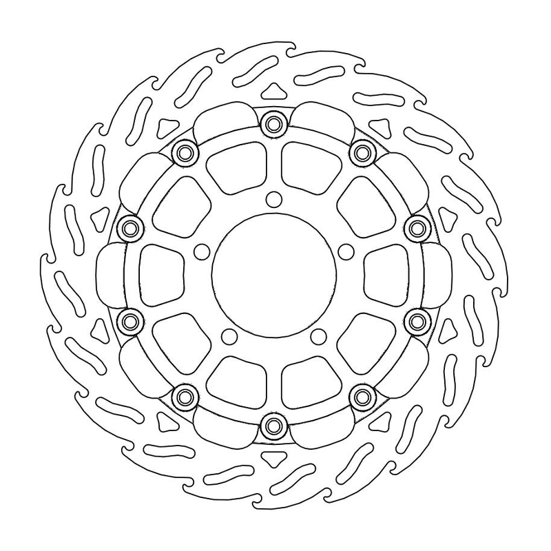 Questo disco flottante con rotore inacciaio anodizzato di colore nero o o argento. Con il famoso disegno a fiamma che ne aumenta il raffreddamento. Compatibile con la pinza freno originale
