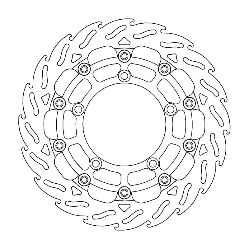 Questo disco flottante con rotore inacciaio anodizzato di colore nero o o argento. Con il famoso disegno a fiamma che ne aumenta il raffreddamento. Compatibile con la pinza freno originale