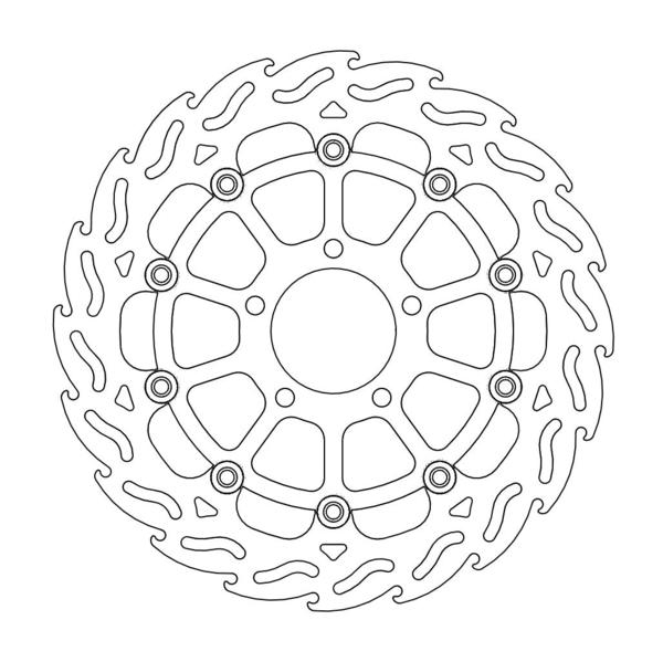 Questo disco flottante con rotore inacciaio anodizzato di colore nero o o argento. Con il famoso disegno a fiamma che ne aumenta il raffreddamento. Compatibile con la pinza freno originale