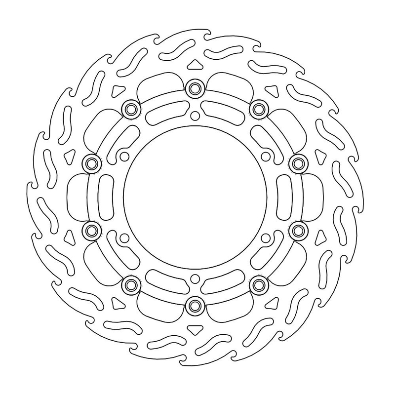 Questo disco flottante con rotore inacciaio anodizzato di colore nero o o argento. Con il famoso disegno a fiamma che ne aumenta il raffreddamento. Compatibile con la pinza freno originale