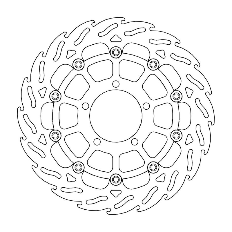 Questo disco flottante con rotore inacciaio anodizzato di colore nero o o argento. Con il famoso disegno a fiamma che ne aumenta il raffreddamento. Compatibile con la pinza freno originale