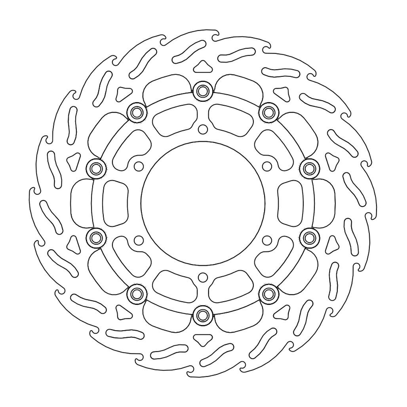 Questo disco flottante con rotore inacciaio anodizzato di colore nero o o argento. Con il famoso disegno a fiamma che ne aumenta il raffreddamento. Compatibile con la pinza freno originale