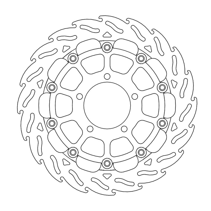 Questo disco flottante con rotore inacciaio anodizzato di colore nero o o argento. Con il famoso disegno a fiamma che ne aumenta il raffreddamento. Compatibile con la pinza freno originale