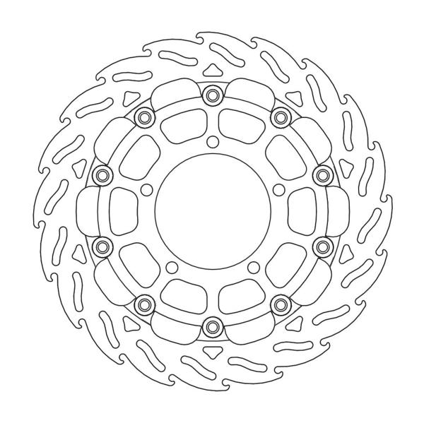 Questo disco flottante con rotore inacciaio anodizzato di colore nero o o argento. Con il famoso disegno a fiamma che ne aumenta il raffreddamento. Compatibile con la pinza freno originale