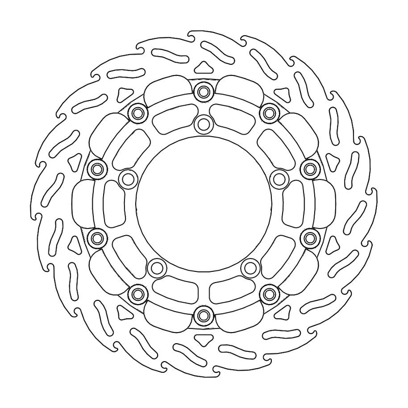 Questo disco flottante con rotore inacciaio anodizzato di colore nero o o argento. Con il famoso disegno a fiamma che ne aumenta il raffreddamento. Compatibile con la pinza freno originale