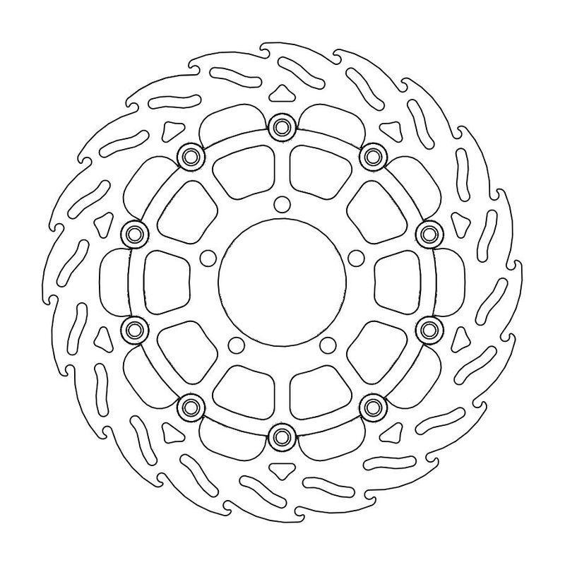 Questo disco flottante con rotore inacciaio anodizzato di colore nero o o argento. Con il famoso disegno a fiamma che ne aumenta il raffreddamento. Compatibile con la pinza freno originale