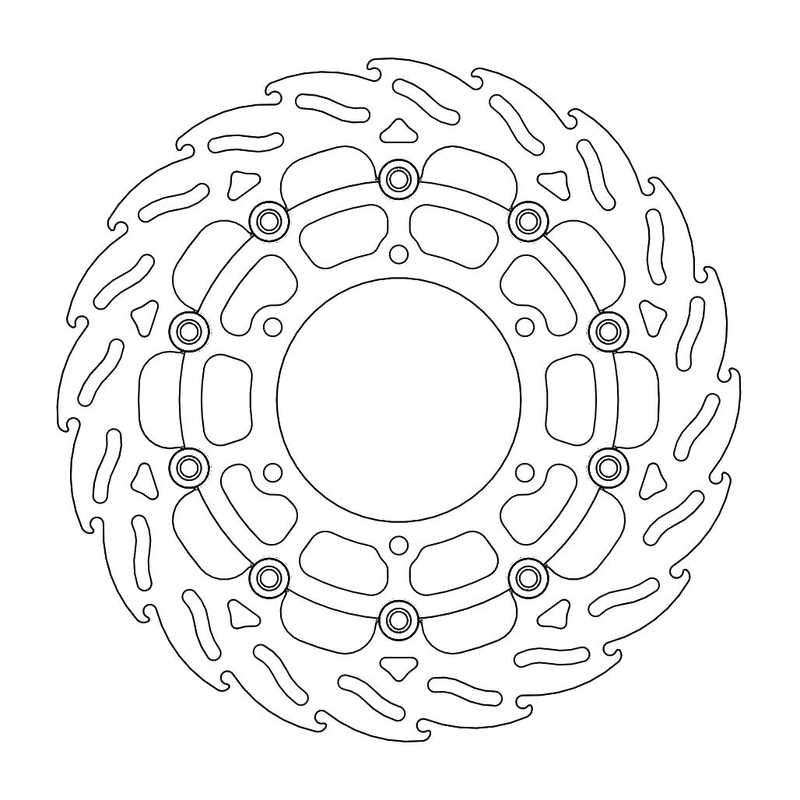 Questo disco flottante con rotore inacciaio anodizzato di colore nero o o argento. Con il famoso disegno a fiamma che ne aumenta il raffreddamento. Compatibile con la pinza freno originale