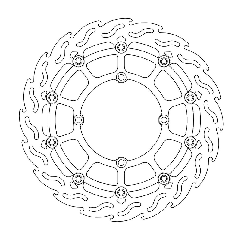 Questo disco flottante con rotore inacciaio anodizzato di colore nero o o argento. Con il famoso disegno a fiamma che ne aumenta il raffreddamento. Compatibile con la pinza freno originale